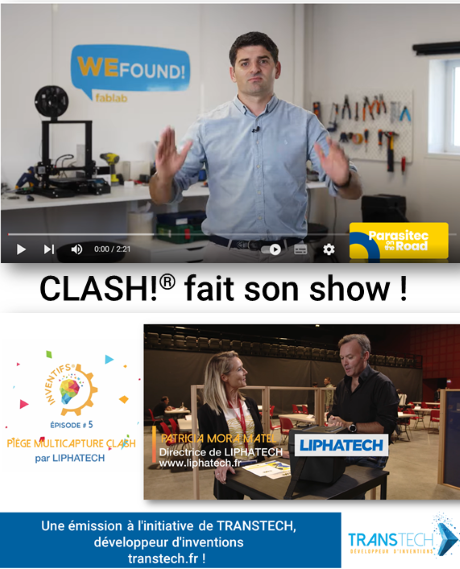 • Sélectionné par un jury de professionnels au concours tremplin du salon I’NOVPRO de la région Nouvelle Aquitaine, découvrez le pitch du piège CLASH!®